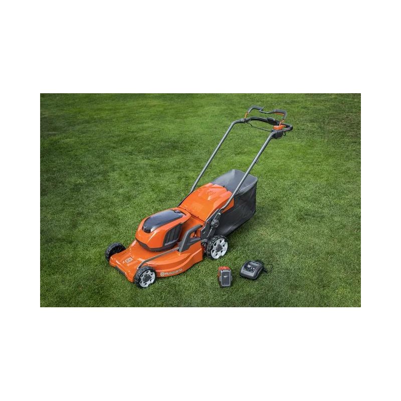 Kosiarka akumulatorowa o zwiększonej szerokości cięcia i dwóch gniazdach na akumulatory, kompatybilna ze wszystkimi akumulatorami Husqvarna dla zwiększenia wygody, opłacalności i czasu pracy. Cicha, wydajna praca bez emisji spalin.